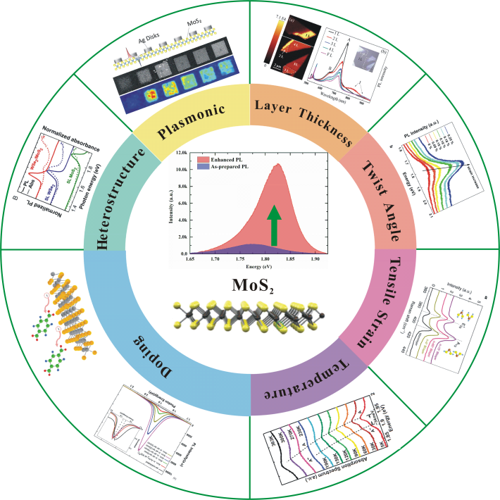 基于近年來在層狀二硫化鉬的光譜特性、能帶調諧與光電應用方面所取得的突破性進展,山西大學激光光譜研究所的肖連團教授團隊系統總結了層狀二硫化鉬的晶體和能帶結構,以及通過層間堆積角度、拉伸應力、環境溫度、電學摻雜等物理手段實現對層狀二硫化鉬能帶結構和光譜特性的調諧,討論了準粒子在調諧中所起的作用,并對二硫化鉬在未來研究存在的挑戰和熱點工作進行了展望。該文章首先介紹了單層二硫化鉬的兩種晶體結構及其能帶特點,多層二硫化鉬的堆疊方式及其穩定性。進而介紹了2H型二硫化鉬中三種主要準粒子,即激子、三子(帶負電的激子)、缺陷束縛的中性激子,它們的形成原因、能帶結構、結合能以及對光譜形狀和強度的貢獻。隨后文章詳細綜述了可用于調諧層狀二硫化鉬能帶結構和光譜特性的方法,包括通過改變二硫化鉬的層數實現從間接帶隙到直接帶隙的轉變;通過改變雙層二硫化鉬的夾角來改變原子層之間的相互作用力;通過單軸和雙軸拉伸力改變原子之間的距離;通過改變材料所處溫度轉換輻射和非輻射通道;通過摻雜(化學摻雜、氣體吸附、缺陷摻雜、電學摻雜)改變層狀二硫化鉬與其表面物種的相互作用及電子轉移;通過改變基底或者異質結的成分改變層狀二硫化鉬與接觸面的相互作用;以及通過等離子體基元所帶來的表面增強效應實現對層狀二硫化鉬的調諧。文章同時介紹了性能可調諧的層狀二硫化鉬在光電器件方面的應用,包括高靈敏光電晶體管和光電探測器、寬帶的可飽和吸收體、微納的光發射器件以及在氣體和離子傳感上的應用。最后還對未來在大尺寸高質量層狀二硫化鉬的合成與轉移、層狀二硫化鉬在谷自旋電子器件和信息領域上的應用等研究方向和趨勢給出了工作展望。該文章對于深入了解二硫化鉬光電性能的調諧及其機理以及光電應用等方面將起到重要的指導意義。相關論文在線發表在Advanced Optical Materials(DOI: 10.1002/adom.201600323)上。