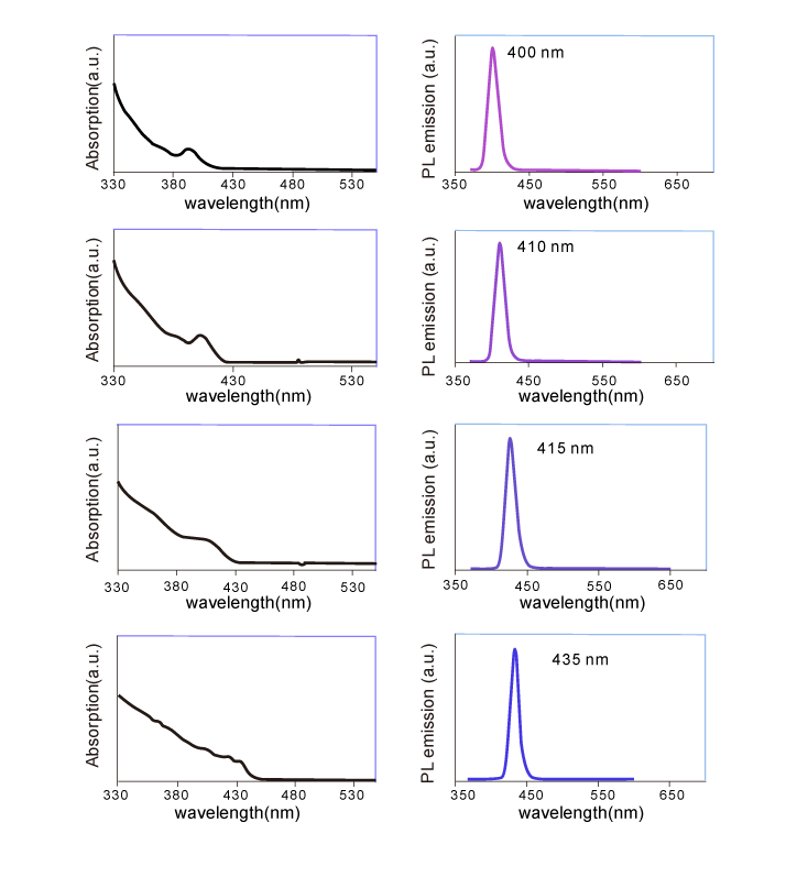 我們可根據客戶需求,提供不同表面基團、溶劑、濃度、400-440nm間任一發(fā)射波長的HMF_ZnSe/ZnS量子點。