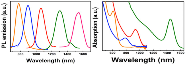 我們可根據客戶需求,提供不同表面基團、溶劑、濃度、780-1600nm間任一發射波長的近紅外PbS量子點和850nm-1250nm間任一發射波長的近紅外Ag2S量子點。