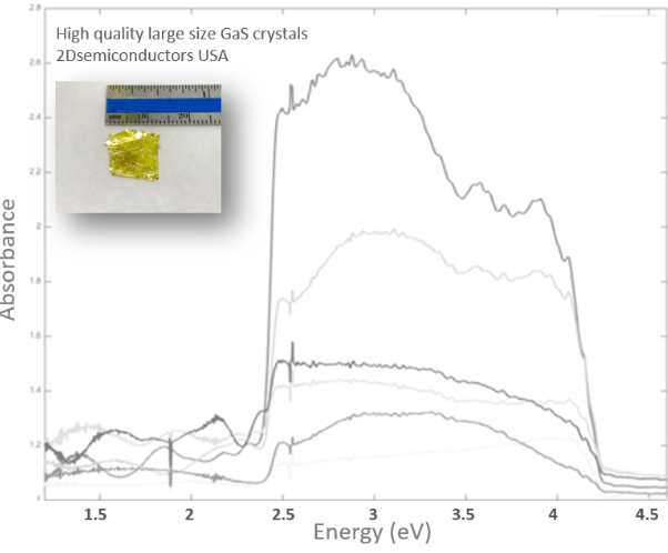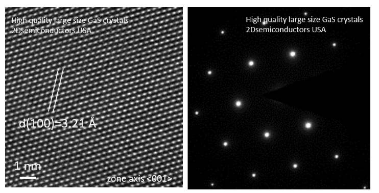 Large size hexagonal phase GaTe (Gallium telluride) crystals have been developed at our facilities using three different growth techniques, namely Bridgman growth, chemical vapor transport (CVT), and flux zone growth, to optimize grain sizes and reduce defect concentrations. In contrast to commonly used chemical vapor transport (CVT) technique, flux grown crystals are well known for their structural perfection and electronic/optical performance. Bridgman and flux zone methods both offer similar grade qualities. Each crystal very large in size to last for years, is highly crystalline, oriented in 0001 direction, and easy to exfoliate. Our R&D staff takes characterization dataset in each sample piece to ensure structural, optical, and electronic consistency.