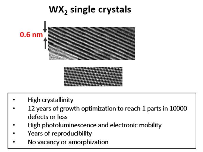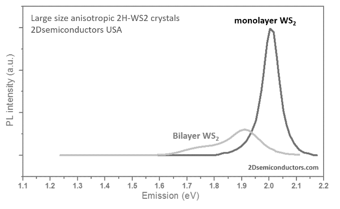 14 years of growth optimization in chemical vapor transport (CVT) as well as flux growth lead to our flawless WS2 crystals: Our large size (~1cm in size) vdW WS2 crystals are treated as gold standards in 2D materials field. The only commercial WS2 crystals that come with guaranteed valleytronic and PL responses. WS2 crystals from 2Dsemiconductors are known for its superior valleytronic performance, perfect crystallization, defect free structure, extremely narrow PL bandwidths, clean PL spectra (free of bound exciton shoulders), and high carrier mobility. Thousands of scientific articles have cited us and used these crystals for scientific accuracy and clean signals. Electronic dopants: Please also see our n- and p-type WS2 crystals doped with Au, Re, Nb, or other transition metal atoms.