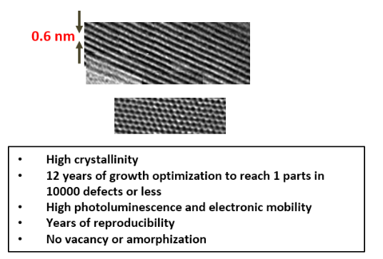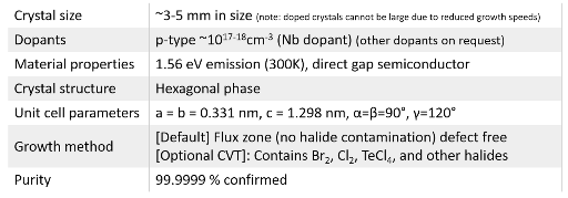 Growth method matters> Flux zone or CVT growth method? Contamination of halides and point defects in layered crystals are well known cause for their reduced electronic mobility, reduced anisotropic response, poor e-h recombination, low-PL emission, and lower optical absorption. Flux zone technique is a halide free technique used for synthesizing truly semiconductor grade vdW crystals. This method distinguishes itself from chemical vapor transport (CVT) technique in the following regard: CVT is a quick (~2 weeks) growth method but exhibits poor crystalline quality and the defect concentration reaches to 1E11 to 1E12 cm-2 range. In contrast, flux method takes long (~3 months) growth time, but ensures slow crystallization for perfect atomic structuring, and impurity free crystal growth with defect concentration as low as 1E9 - 1E10 cm-2. During check out just state which type of growth process is preferred. Unless otherwise stated, 2Dsemiconductors ships Flux zone crystals as a default choice.