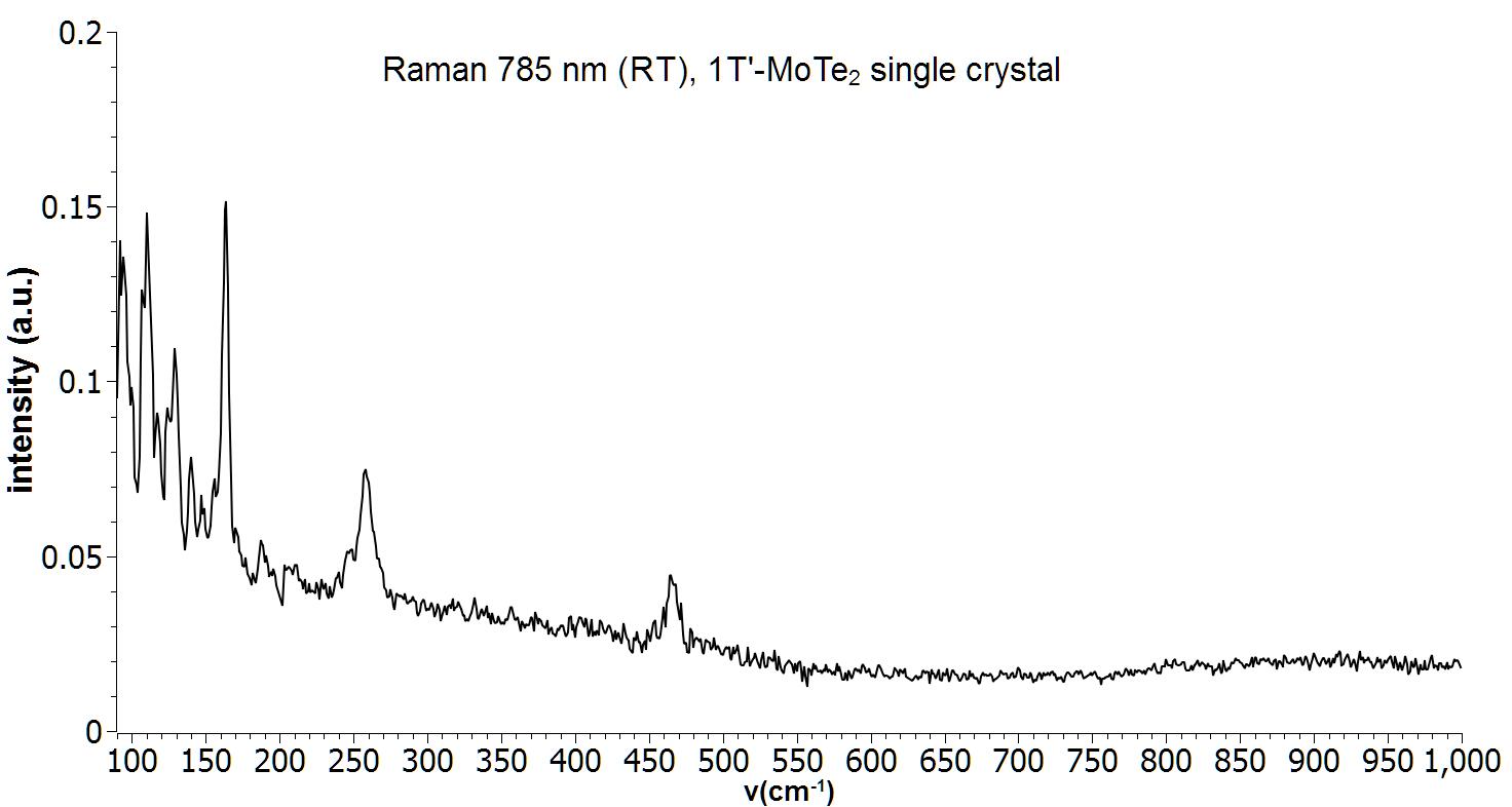 Raman spectrum of a single crystal 1T'-MoTe2. Measurement was performed with a 785 nm Raman system at room temperature.