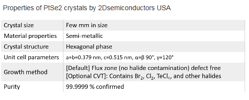 Platinum diselenide (PtSe2) is a member of transition metal dichalcogenide (TMDCs) family with the MX2 formula. While it is an established semimetal in the bulk form the band gap of its monolayer has been recently predicted to be a semiconductor (Nano Letters, 2015, 15, 4013).