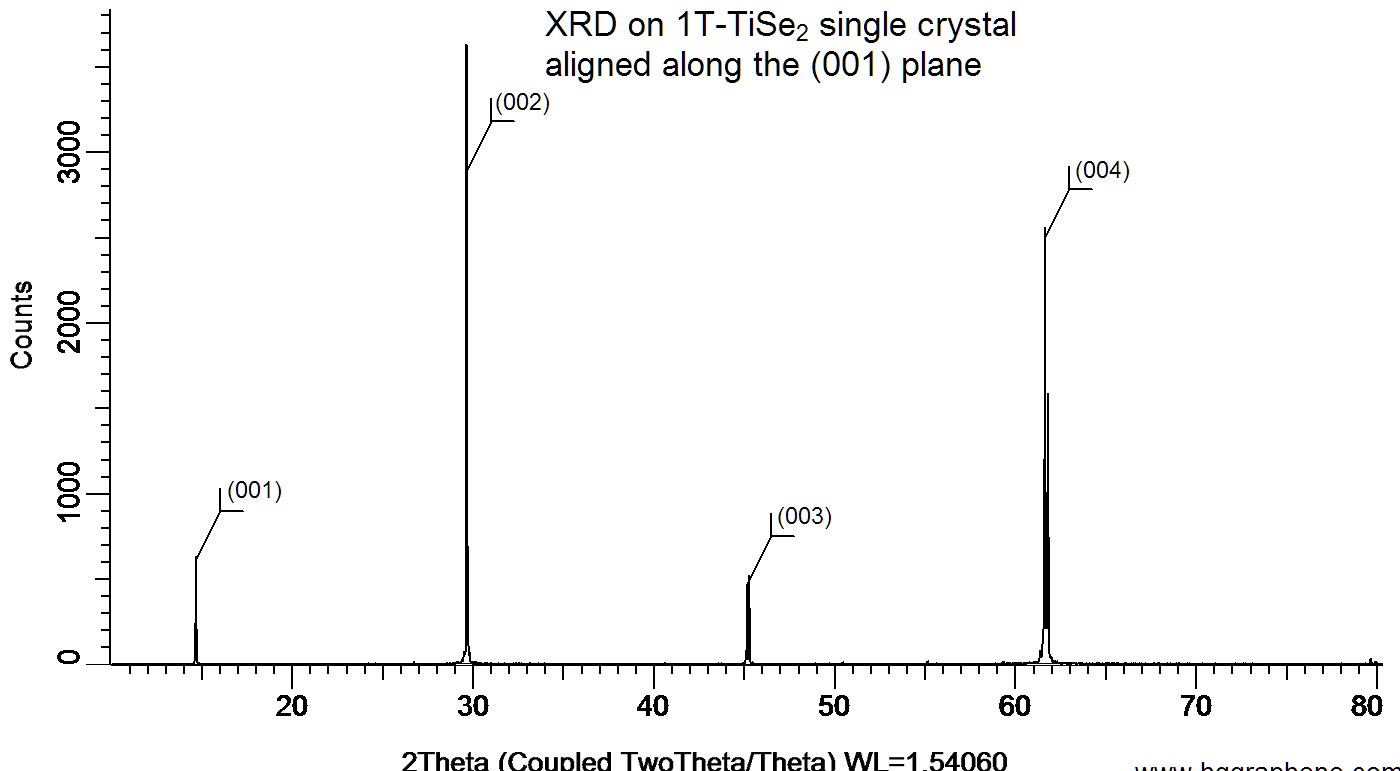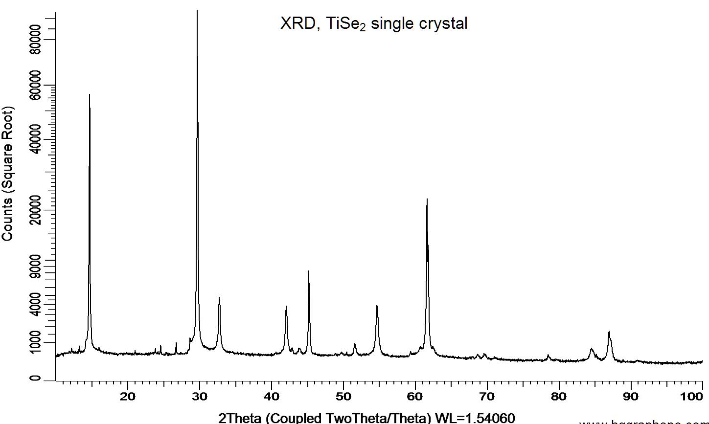 Powder X-ray diffraction (XRD) of a single crystal TiSe2. X-ray diffraction was performed at room temperature using a D8 Venture Bruker.