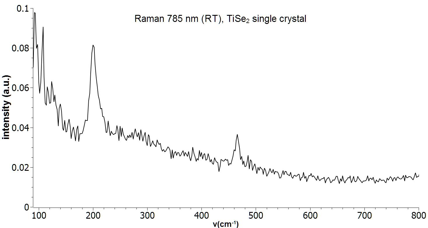 Raman spectrum of a single crystal TiSe2. Measurement was performed with a 785 nm Raman system at room temperature.