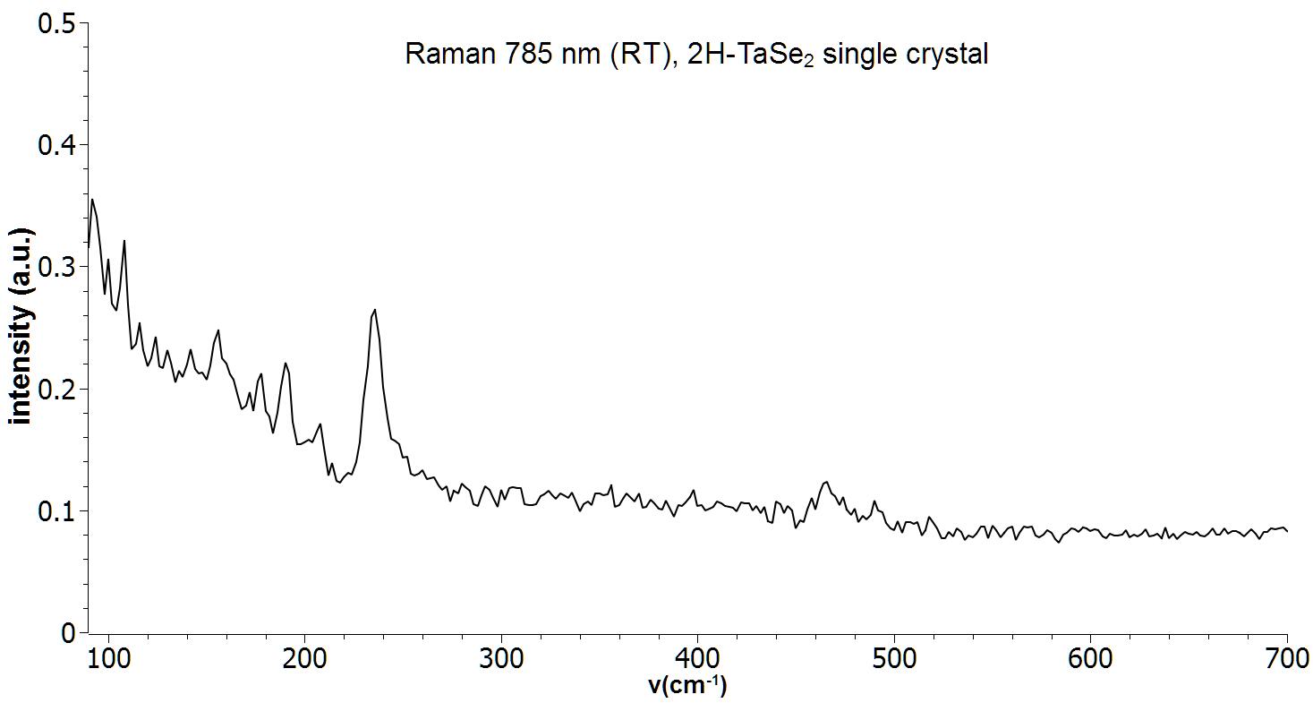 Raman spectrum of a single crystal 2H-TaSe2. Measurement was performed with a 785 nm Raman system at room temperature.